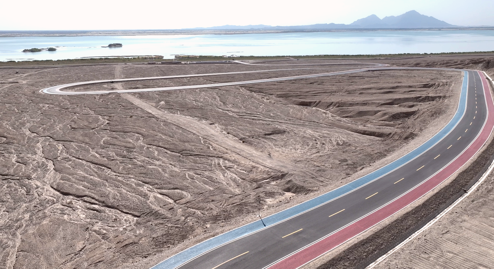 該項(xiàng)目位于新疆圖木舒克市永安湖南庫(kù),地處塔克拉瑪干沙漠邊緣,地緣地貌特殊,項(xiàng)目路線分三部分,項(xiàng)目建設(shè)里程全長(zhǎng)31.232公里。