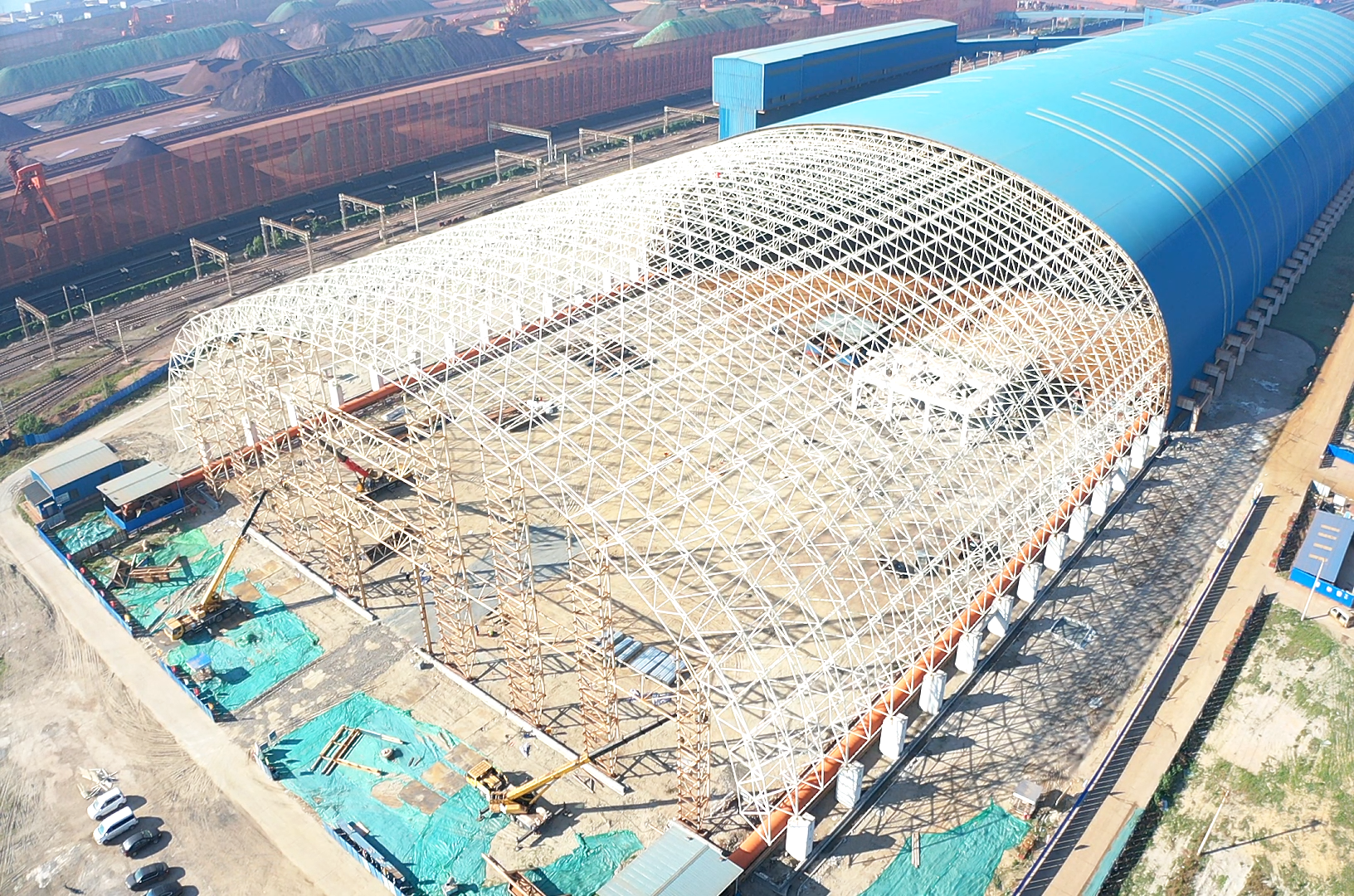 5月26日,華北公司曹妃甸國際礦石交易中心(一期)擴(kuò)建項(xiàng)目大跨度鋼結(jié)構(gòu)網(wǎng)架全部吊裝完成。