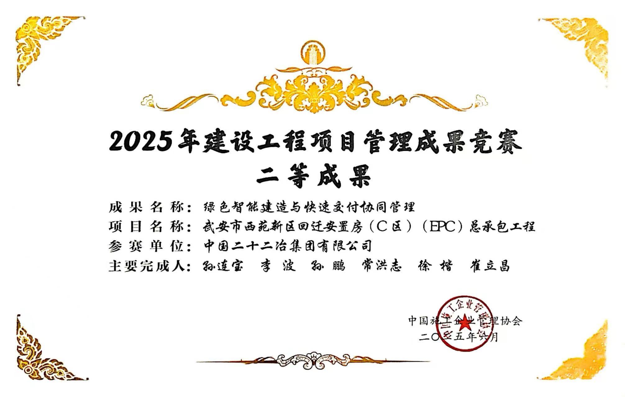 近日獲悉,華北公司北京交通大學(xué)唐山研究院項目、臨沂優(yōu)特鋼軋鋼項目、武安回遷安置房C區(qū)項目和涿神鋁加工項目分別榮獲中國施工企業(yè)管理協(xié)會頒發(fā)的2025年建設(shè)工程項目管理成果競賽二等成果。