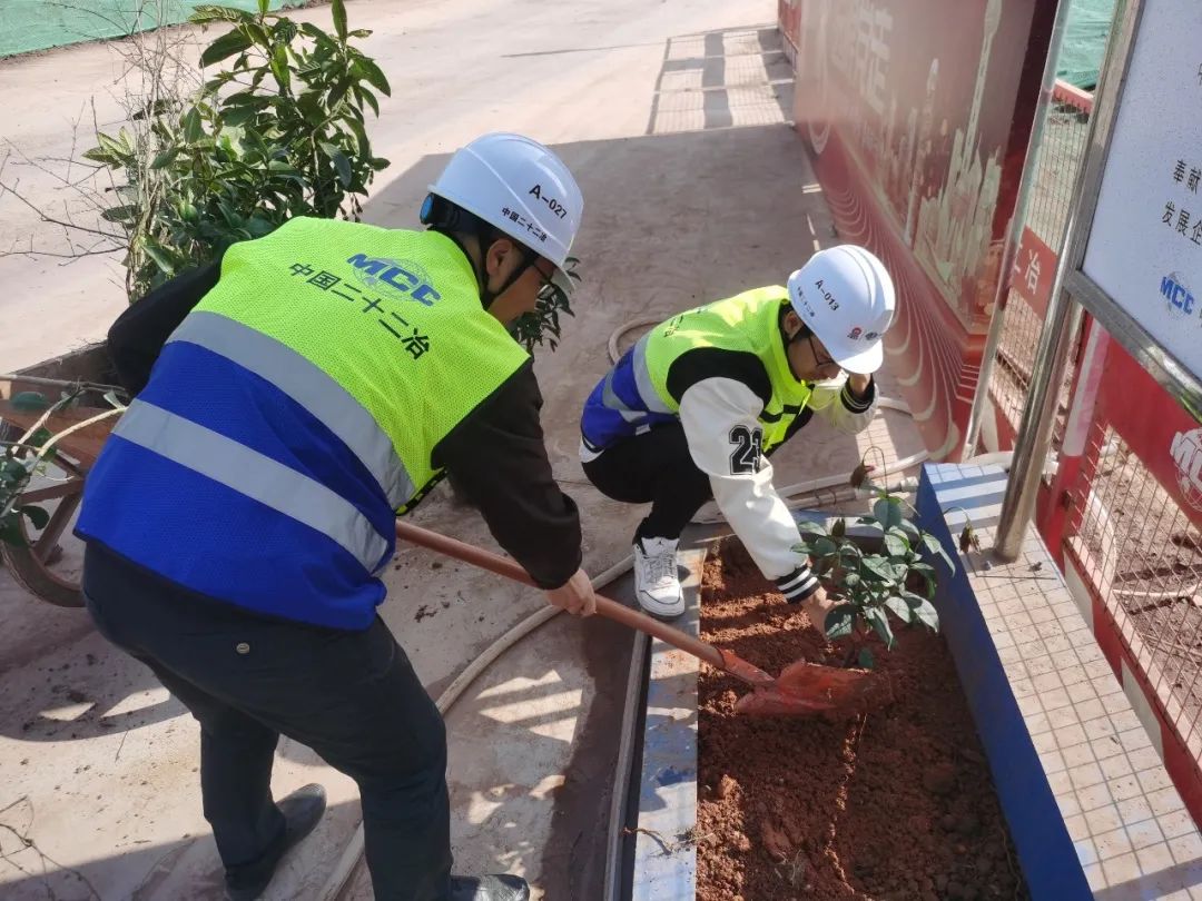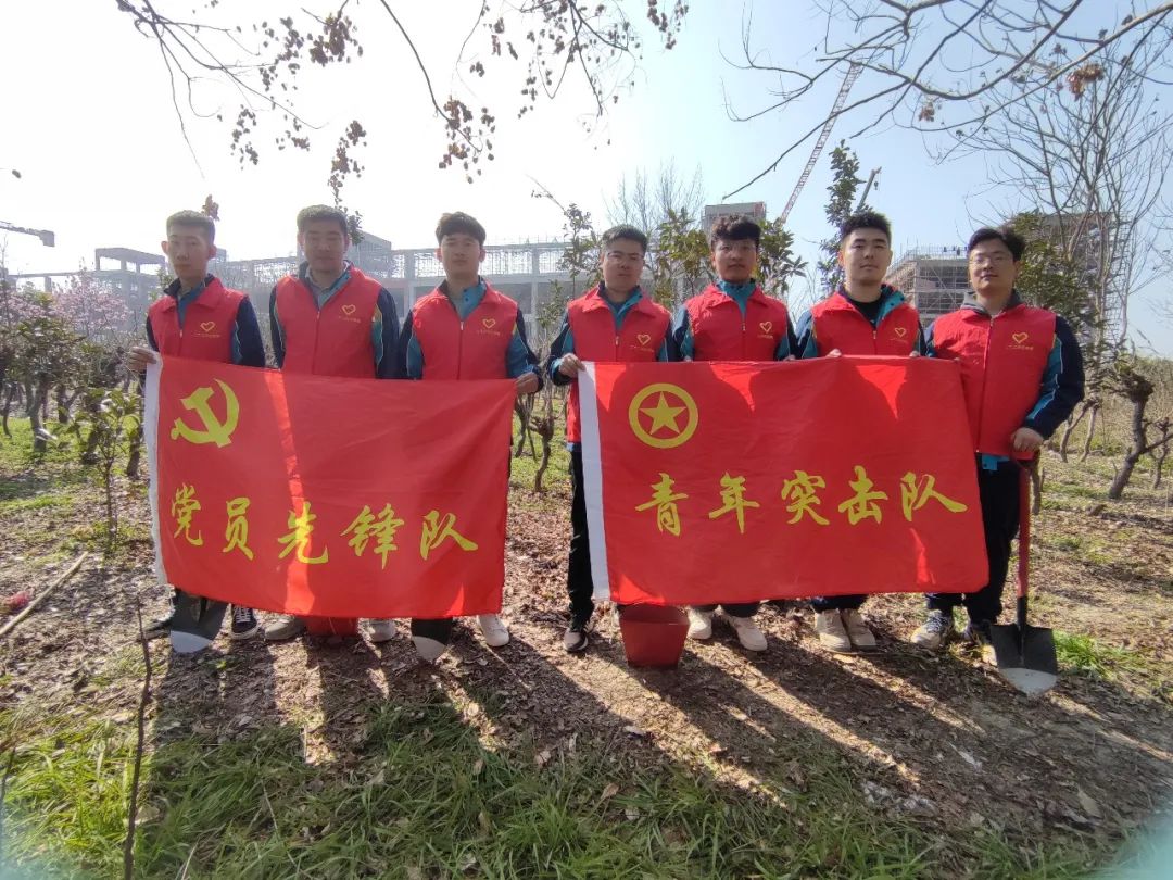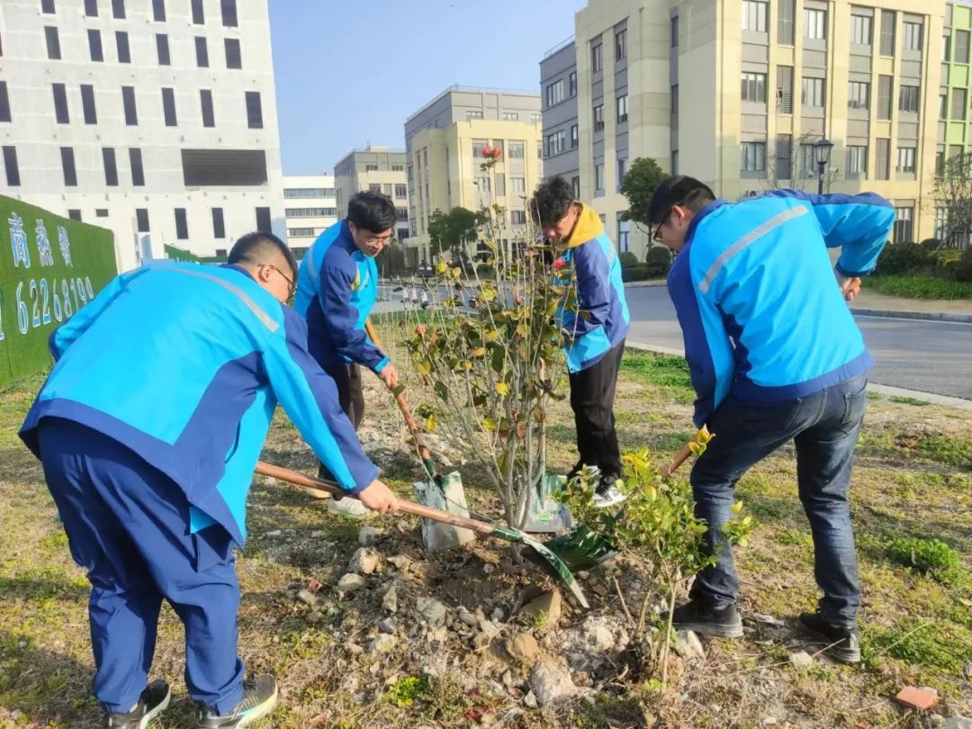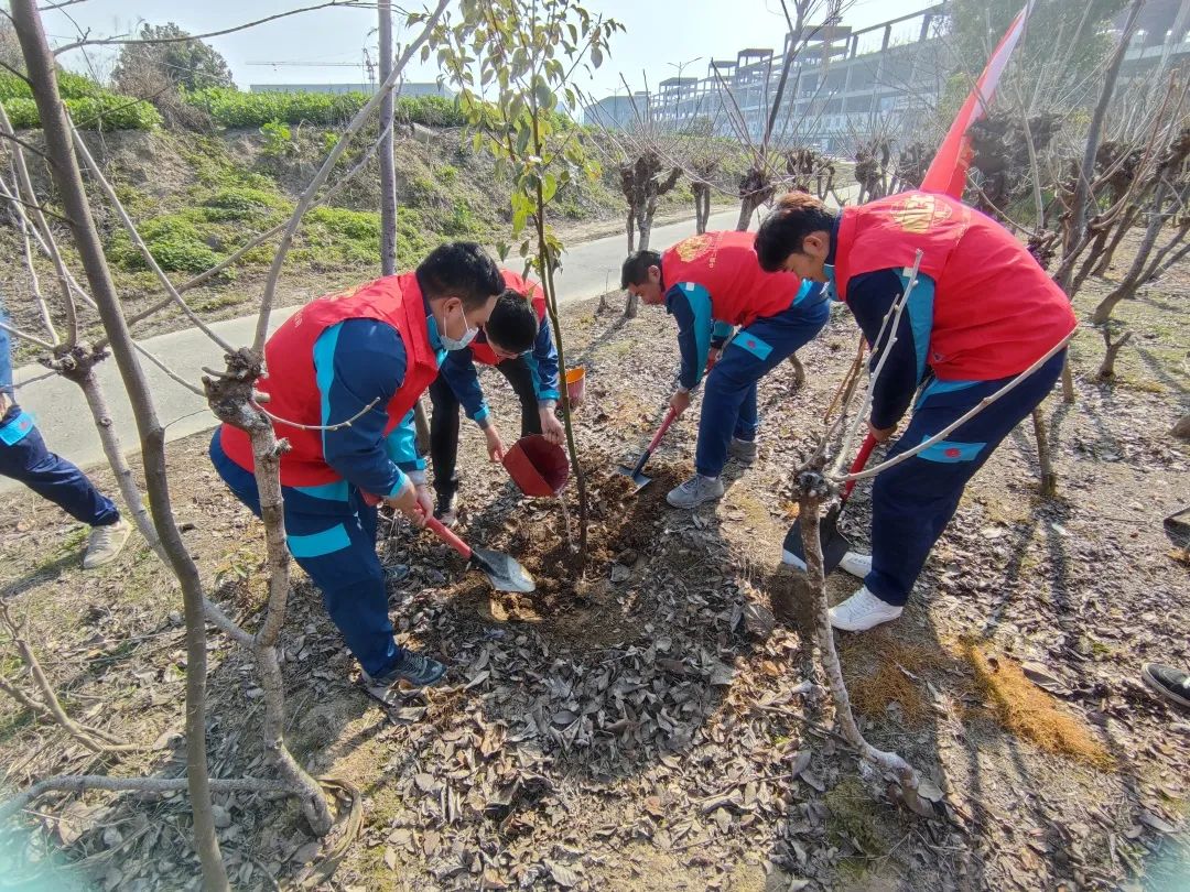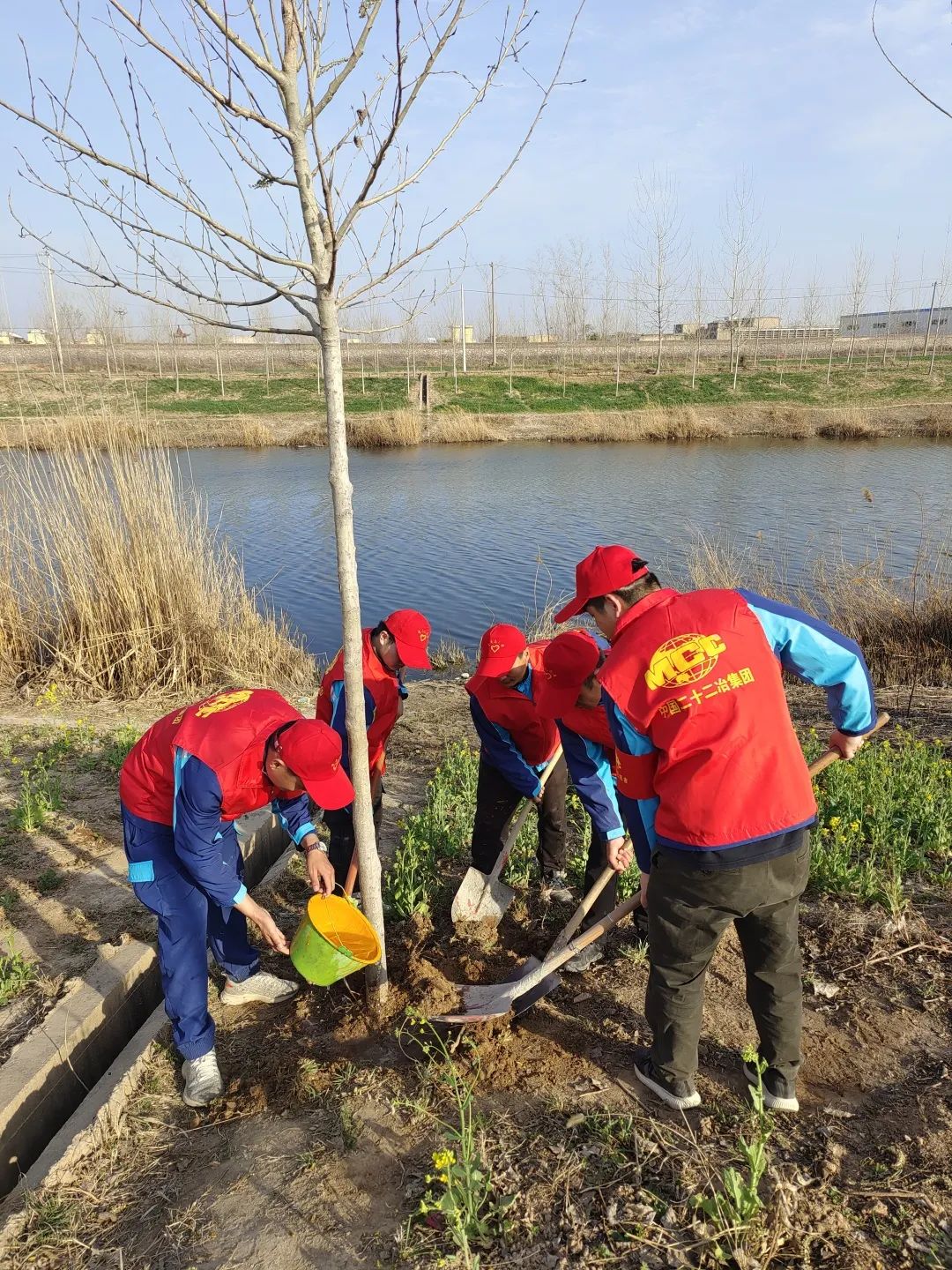 相互協(xié)作、扶樹填土、澆灌樹苗