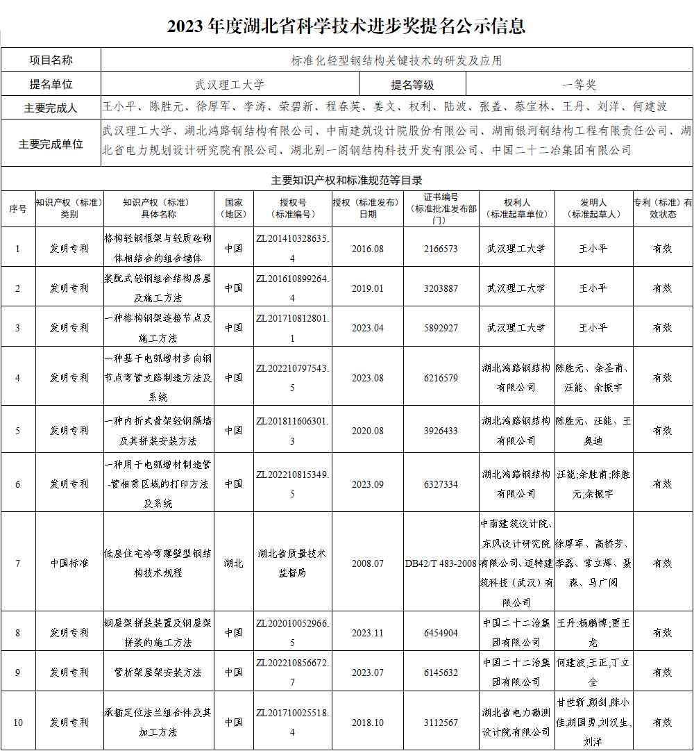 2023年度湖北省科學(xué)技術(shù)進(jìn)步獎(jiǎng)提名公示信息
