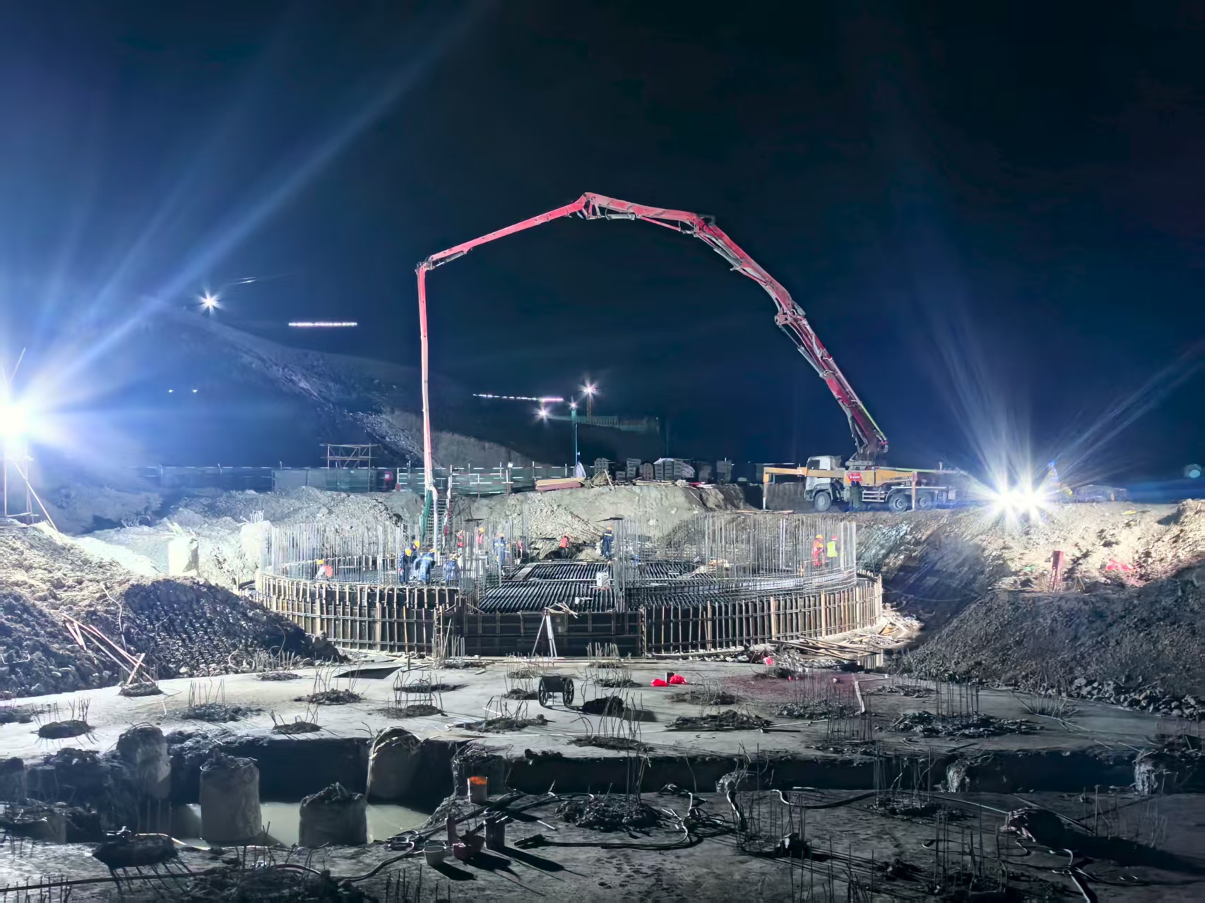 施工過程中,面對(duì)場(chǎng)地狹窄、組織復(fù)雜、夜間連續(xù)作業(yè)等諸多挑戰(zhàn),項(xiàng)目團(tuán)隊(duì)周密策劃、高效協(xié)調(diào),嚴(yán)格實(shí)施全過程質(zhì)量控制。從混凝土配比優(yōu)化到澆筑順序設(shè)計(jì),從設(shè)備人員調(diào)配至實(shí)時(shí)施工監(jiān)測(cè),每一環(huán)節(jié)均做到精準(zhǔn)管控,歷時(shí)13小時(shí),一次性順利完成650立方米混凝土澆筑,成為工程推進(jìn)過程中的重要里程碑節(jié)點(diǎn),為完成工程下一步施工奠定了堅(jiān)實(shí)基礎(chǔ)。
