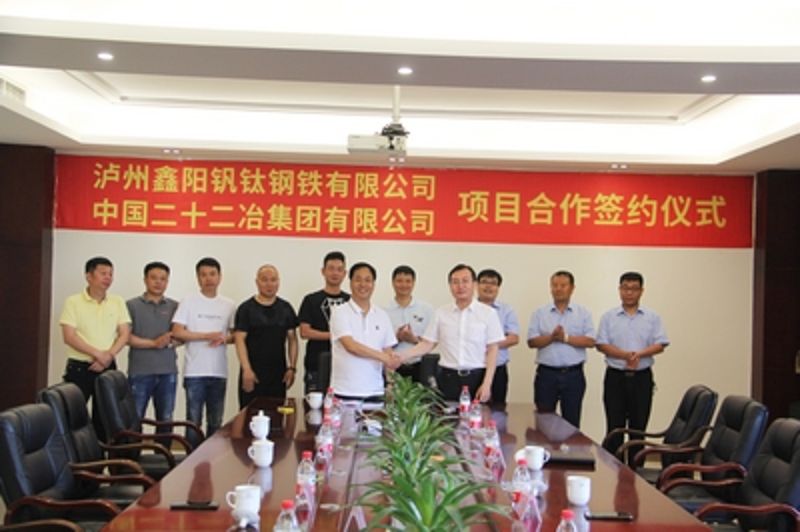 5月23日,中國(guó)二十二冶集團(tuán)與瀘州鑫陽(yáng)釩鈦鋼鐵有限公司簽訂瀘州鑫陽(yáng)釩鈦煉鋼項(xiàng)目合同。中國(guó)二十二冶集團(tuán)總經(jīng)理、黨委副書(shū)記朱曉飛,瀘州鑫陽(yáng)釩鈦鋼鐵有限公司董事長(zhǎng)劉義騰出席儀式并代表雙方簽約。