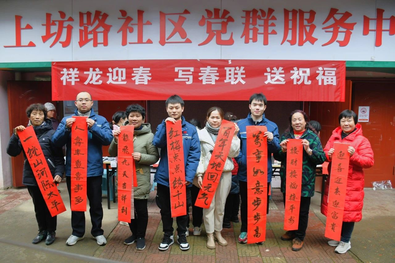 為深入學(xué)習(xí)貫徹習(xí)近平文化思想,進一步深化黨建聯(lián)建工作,1月30日上午,江西公司聯(lián)合上坊路社區(qū)開展“祥龍迎春 寫春聯(lián) 送祝福”活動。
