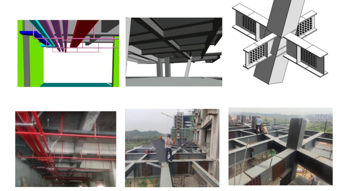 景德鎮(zhèn)藝術(shù)職業(yè)大學(xué)是我國首個藝術(shù)類職業(yè)大學(xué),其中學(xué)校工學(xué)綜合組團(tuán)中的雙創(chuàng)大樓為混凝土框架結(jié)構(gòu)和懸挑鋼結(jié)構(gòu)組合結(jié)構(gòu),是本項目的重難點單體工程。雙創(chuàng)大樓具有建筑造型比較新穎,各專業(yè)交叉多、施工工期緊張,鋼結(jié)構(gòu)施工難度大,機(jī)電管線多且復(fù)雜,設(shè)備房數(shù)量多等特點,故項目采用BIM作為解決以上重難點的技術(shù)措施。BIM技術(shù)貫穿設(shè)計施工全過程,對項目設(shè)計-施工協(xié)同、商務(wù)成本管控、工期進(jìn)度管控、施工質(zhì)量管控起到重要作用。