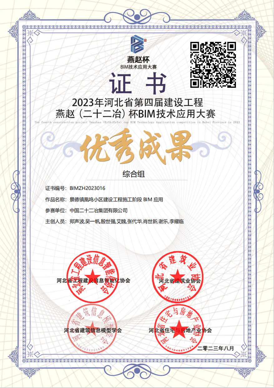 近日,2023年河北省第四屆燕趙杯BIM技術(shù)大賽結(jié)果公布,江西公司申報的《景德鎮(zhèn)凰鳴小區(qū)建設(shè)工程施工階段BIM應(yīng)用》榮獲優(yōu)秀成果獎。