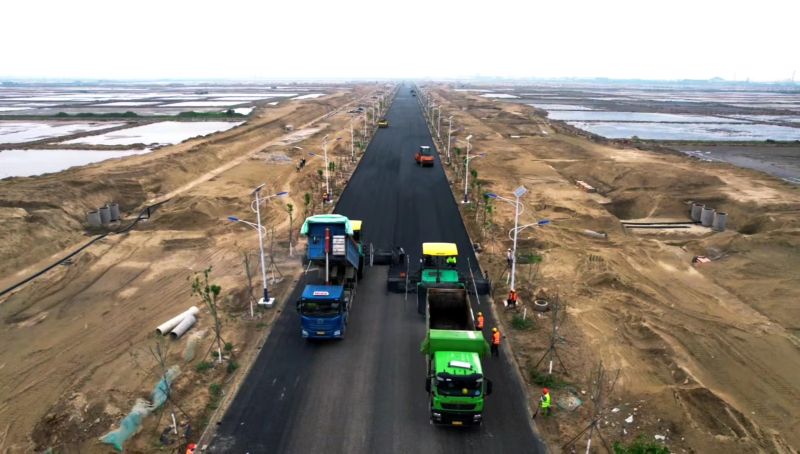 該項(xiàng)目位于山東省萊州市土山鎮(zhèn),地處煙臺(tái)、青島、濰坊三市交界處,是萊州市實(shí)現(xiàn)產(chǎn)業(yè)升級(jí)的重要落腳點(diǎn)。項(xiàng)目擬建設(shè)園區(qū)面積達(dá)22.8平方公里,建設(shè)內(nèi)容涉及園區(qū)所必需的道路工程、綠化亮化工程、智慧化園區(qū)工程、給水工程、污水工程、雨水工程、管廊、應(yīng)急救援商務(wù)可研中心及?;吠\?chē)場(chǎng)等。此次施工完成的銀海五路,瀝青施工、行道樹(shù)及路燈施工圓滿(mǎn)完成。道路全線貫通,與周邊設(shè)施完美融合,此次施工完成的銀海五路寬15米、長(zhǎng)2044.368米,是此次項(xiàng)目建設(shè)的重要部分。