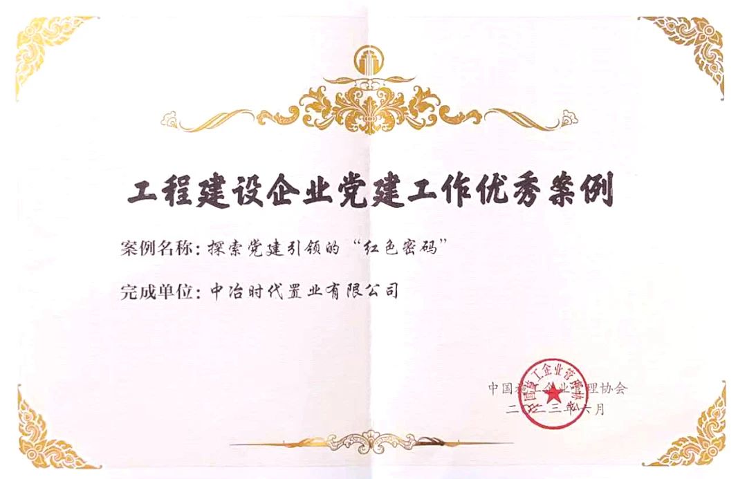 近日,中國施工企業(yè)管理協(xié)會公布了全國工程建設(shè)企業(yè)黨建工作最佳案例和優(yōu)秀案例的評選結(jié)果,時代置業(yè)公司申報的《探索黨建引領(lǐng)的“紅色密碼”》獲評全國工程建設(shè)企業(yè)黨建工作優(yōu)秀案例。