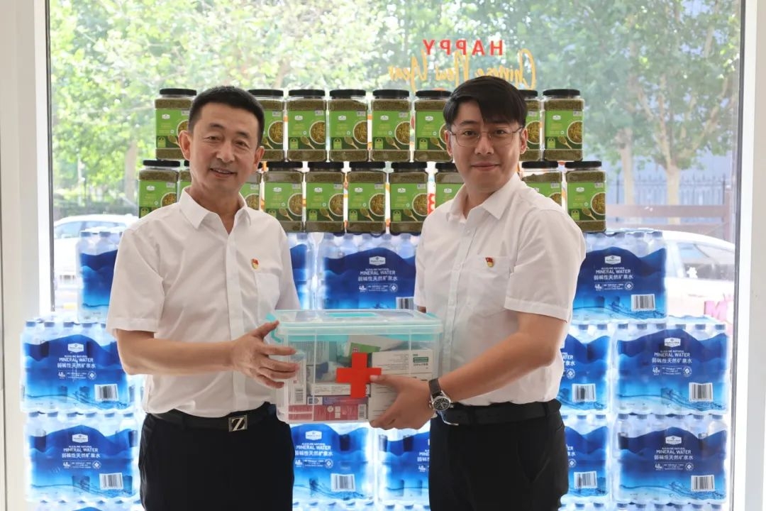 在中冶·尚和府項目,張學鋒為項目人員送去西瓜、飲料、礦泉水等防暑降溫物資的同時,還為員工送去“愛心藥箱”,內有板藍根、腸炎寧、藿香正氣水、風油精等夏季常備藥品。并叮囑項目從食品安全、用餐環(huán)境、職工需求、飯菜口味、飲食健康等方面著手,用心守護員工舌尖上的“幸?!?。