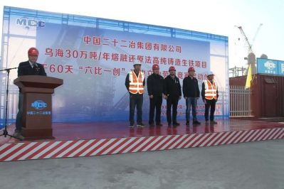 5月1日,市政公司2020年大干60天“六比一創(chuàng)”建功立業(yè)勞動競賽啟動儀式在烏海30萬噸/年熔融還原法高純鑄造生鐵項目部拉開帷幕。賽思普科技有限公司副總經(jīng)理周海川同志,二十二冶集團公司工會綜合管理部業(yè)務(wù)主管常洪文同志,市政公司黨委副書記、紀委書記、代理工會主席季濤同志,市政公司總會計師盧衛(wèi)兵同志以及烏海項目相關(guān)人員出席此次活動。