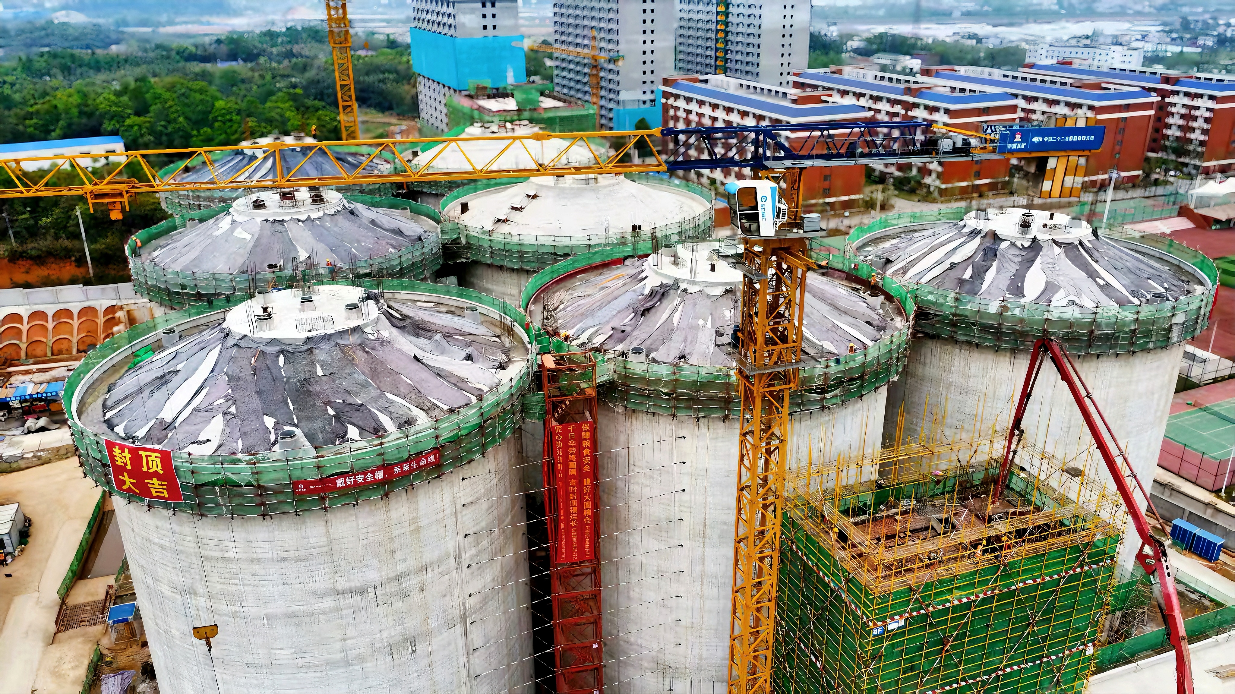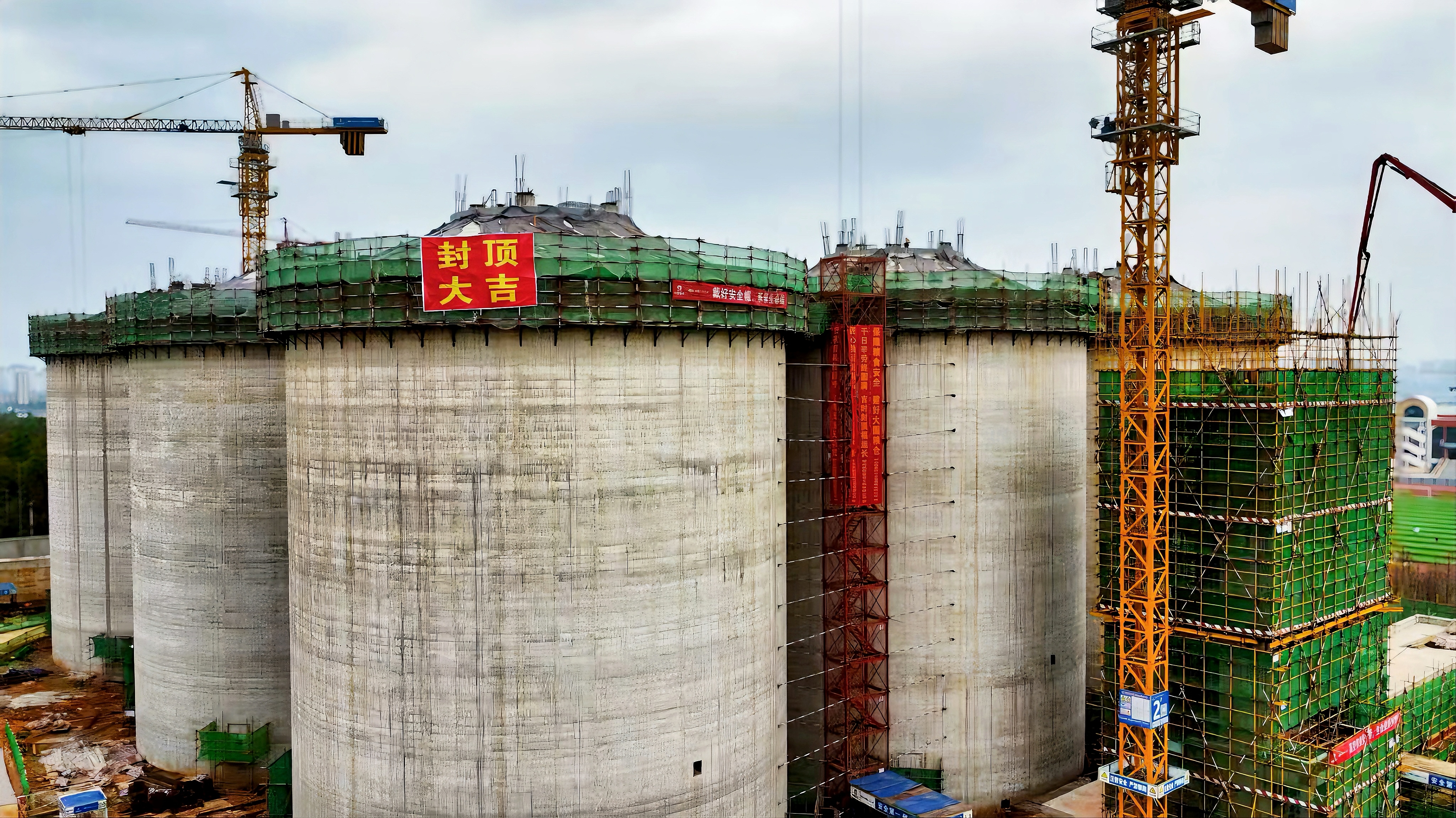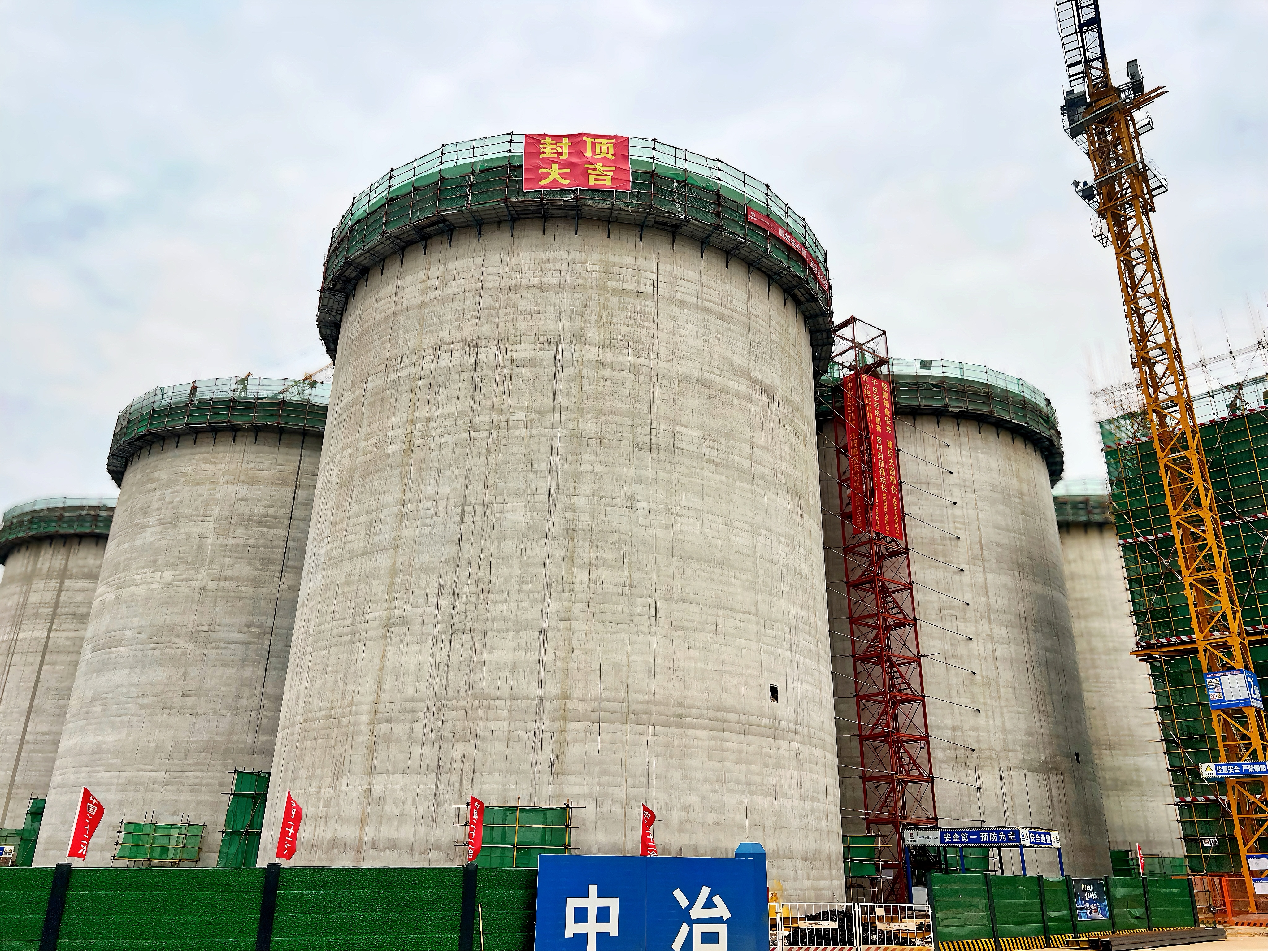 浙江公司中央儲(chǔ)備糧寧鄉(xiāng)直屬庫(kù)糧食倉(cāng)儲(chǔ)物流項(xiàng)目筒倉(cāng)倉(cāng)頂順利封頂