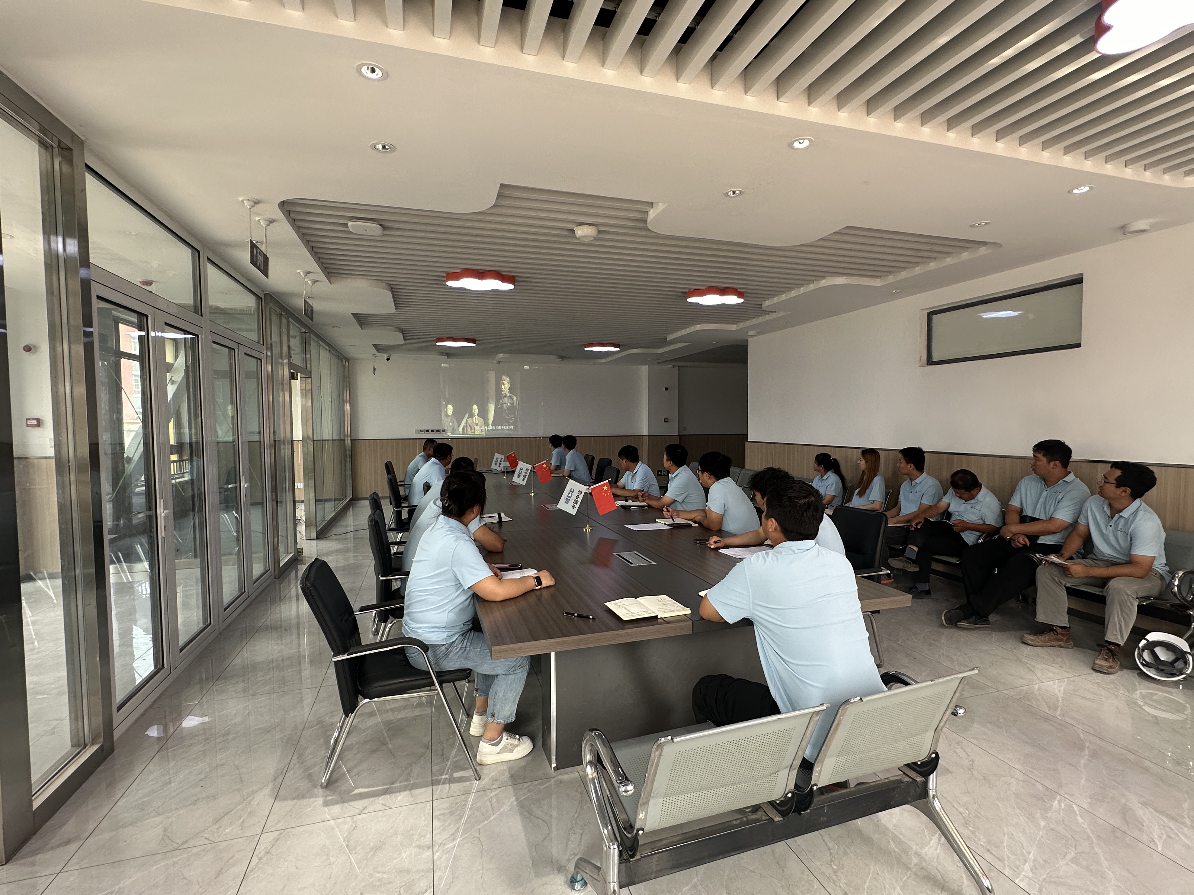 玉田職教中心項目黨支部開展“迎七一 強黨性 守初心 勇?lián)敗敝黝}黨日活動。組織全體員工觀看紅色電影《建黨偉業(yè)》。電影全景式的講述了辛亥革命、護國戰(zhàn)爭、五四運動等歷史事件,準確的呈現(xiàn)了中國共產(chǎn)黨誕生的歷史背景。隨后,組織集體生日會,共同慶祝中國共產(chǎn)黨成立103周年。全體員工紛紛表示,不忘初心、牢記使命,帶領干部和群眾攻堅克難,早日完成項目建設任務,用實際行動為企業(yè)發(fā)展貢獻自己力量。