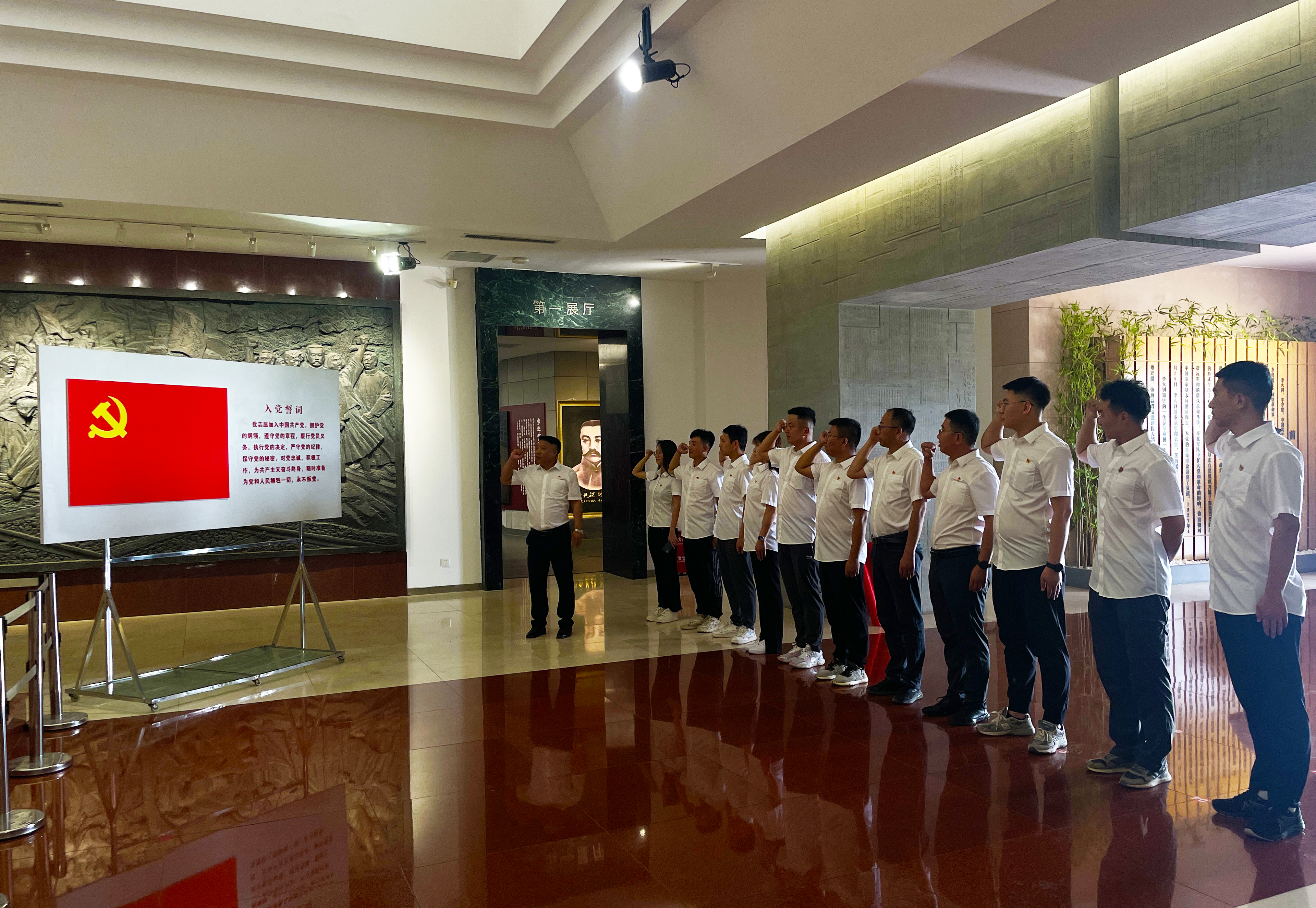 唐山海港職業(yè)技術(shù)學院項目和50萬噸鐵塔智能制造項目赴樂亭縣李大釗紀念館開展“喜迎七一建黨節(jié) 不忘初心跟黨走”主題黨日活動。在李大釗紀念館正廳,大家在支部書記的帶領下,舉起右手,共同莊嚴地宣誓:“我志愿加入中國共產(chǎn)黨,擁護黨的綱領,遵守黨的章程,履行黨員義務,執(zhí)行黨的決定......”鏗鏘有力的宣誓聲響徹大廳。宣誓后,大家懷著對李大釗同志無比崇敬的心情,對各展廳進行了參觀,認真聽取講解員的講解,在參觀過程中,一張張彌足珍貴的歷史照片、一件件樸素無華的革命文物,再現(xiàn)了李大釗追求革命、堅持真理、英勇不屈、視死如歸的大無畏氣概,給全體黨員上了一堂形象、生動的紅色教育課。參觀結(jié)束后,黨員們紛紛表示此次到李大釗紀念館參觀,通過聽、看、學、思等方式,深刻地感受到愛國主義和革命英雄主義精神,也讓理想信念在重溫激蕩中堅定,讓精神血脈在接續(xù)奮斗中傳承。