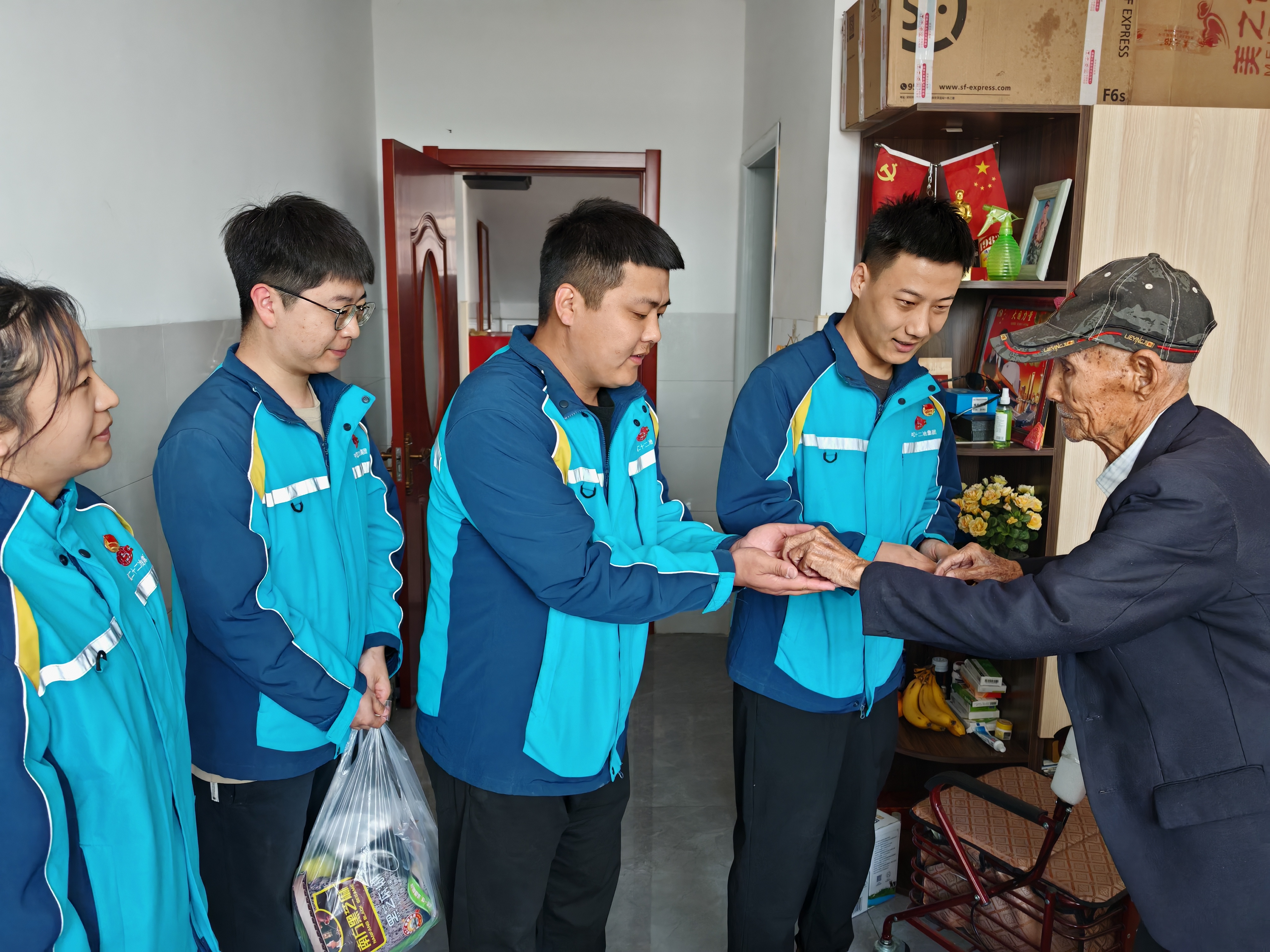 玉田職教中心項(xiàng)目團(tuán)支部開(kāi)展“聽(tīng)老紅軍爺爺講故事”主題活動(dòng)。組織團(tuán)員青年來(lái)到鴉鴻橋鎮(zhèn)穆莊子村福順老年公寓看望99歲高齡的老紅軍周子新?tīng)敔?。周爺爺講述自己在東北野戰(zhàn)軍第十三兵團(tuán)當(dāng)參謀長(zhǎng)的經(jīng)歷“記得那時(shí)候被日軍合圍,不分日夜的在田間巡查,天當(dāng)被,地當(dāng)床,野外睡覺(jué)心不涼,抗日救國(guó)心中燃,刮風(fēng)下雨心不寒”?!案锩且环N信仰,心中有信仰,腳下就有了方向,我們要矢志不渝的跟黨走,國(guó)家一定會(huì)越來(lái)越好,你們青年是國(guó)家的未來(lái),希望你們不斷超越自我,實(shí)現(xiàn)自己的夢(mèng)想,為祖國(guó)的繁榮昌盛貢獻(xiàn)自己的一份力量?!敝軤敔攲?duì)團(tuán)員青年的囑托。聽(tīng)老紅軍爺爺講起當(dāng)年的光輝歲月,讓大家倍加珍惜眼前的幸福生活,青年員工將繼承老一輩革命家,不畏艱險(xiǎn)、以苦為樂(lè)的革命精神。在工作中將用責(zé)任心和使命感,發(fā)揚(yáng)團(tuán)結(jié)拼搏的精神,用實(shí)際行動(dòng)為項(xiàng)目?jī)?yōu)質(zhì)履約貢獻(xiàn)力量,讓紅色基因薪火相傳。最后,青年員工給老紅軍爺爺送上慰問(wèn)品和紀(jì)念品,表達(dá)對(duì)革命先輩的關(guān)心和敬仰。