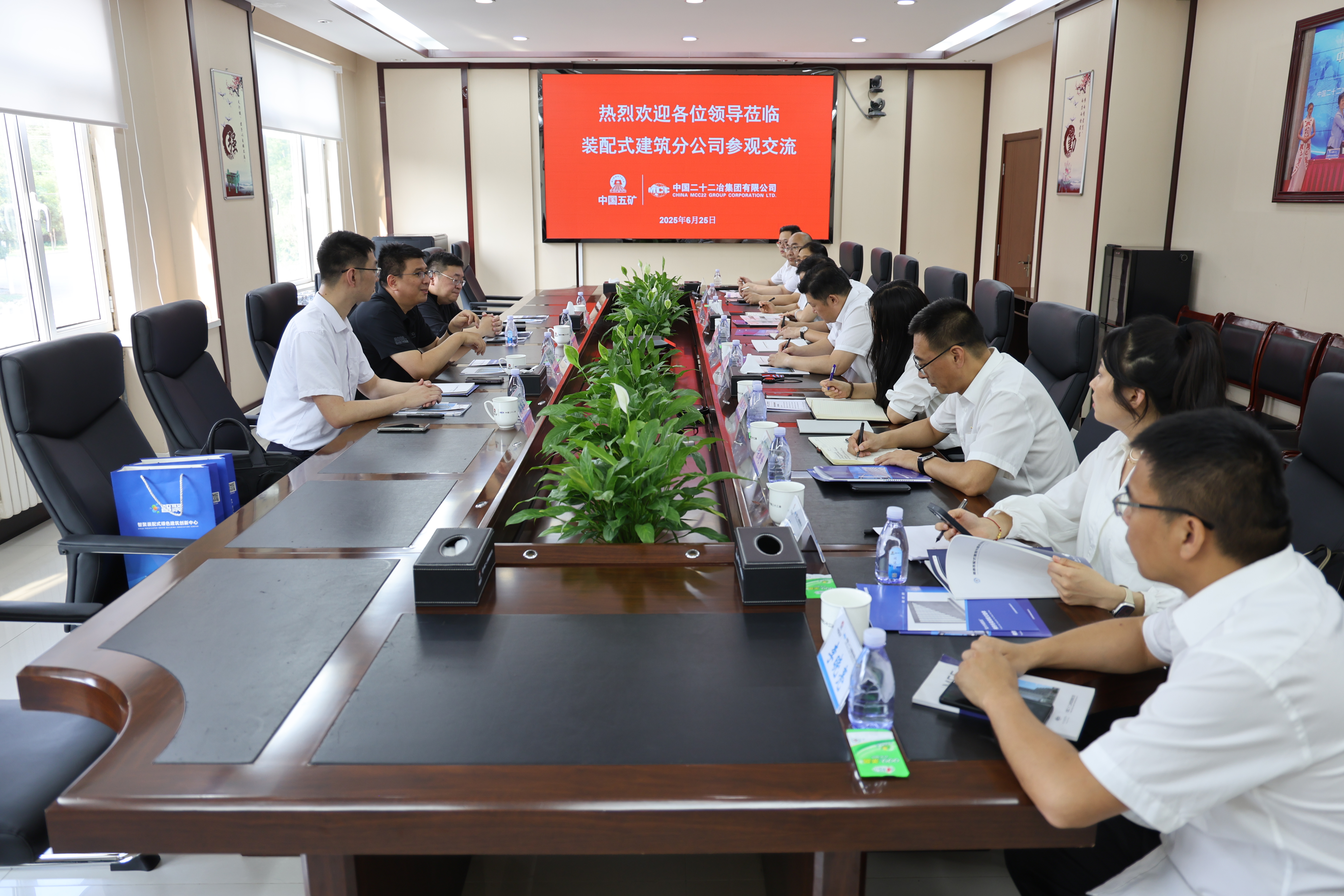 張蓋對(duì)宮海院長(zhǎng)一行的到來(lái)表示熱烈歡迎,并談到中國(guó)二十二冶作為中國(guó)五礦及中國(guó)中冶旗下核心骨干子企業(yè),在大型工程總承包、施工建造領(lǐng)域擁有深厚積淀與卓越實(shí)力。其在裝配式建筑領(lǐng)域已成功打造多個(gè)國(guó)家級(jí)、省部級(jí)示范項(xiàng)目,具備從深化設(shè)計(jì)、部品部件生產(chǎn)到現(xiàn)場(chǎng)裝配施工的全鏈條實(shí)施能力,尤其在大型復(fù)雜公共建筑、超高層鋼結(jié)構(gòu)住宅體系方面經(jīng)驗(yàn)豐富,是推動(dòng)裝配式技術(shù)規(guī)?;涞氐闹匾α?,期待雙方聚焦智能建造與建筑工業(yè)化協(xié)同發(fā)展的核心趨勢(shì),在技術(shù)共研、項(xiàng)目共創(chuàng)、戰(zhàn)略共謀等多個(gè)維度深化務(wù)實(shí)合作。
