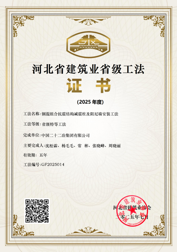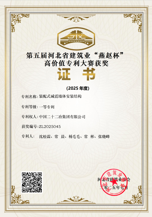 近日,河北省建筑業(yè)協(xié)會(huì)公布了第三屆工法大賽和第五屆“燕趙杯”高價(jià)值專利大賽評(píng)選結(jié)果。中國二十二冶裝配式分公司憑借突出的技術(shù)創(chuàng)新實(shí)力與應(yīng)用價(jià)值,斬獲兩項(xiàng)省級(jí)榮譽(yù)?!朵摶旖M合抗震結(jié)構(gòu)減震柱及阻尼墻安裝工法》獲得河北省建筑業(yè)省級(jí)特等工法;《裝配式減震墻體安裝結(jié)構(gòu)》專利獲得高價(jià)值專利大賽一等獎(jiǎng)。該工法融合先進(jìn)技術(shù)與豐富施工經(jīng)驗(yàn),針對(duì)高抗震設(shè)防地區(qū)需求進(jìn)行科技攻關(guān),創(chuàng)新應(yīng)用鋼混組合結(jié)構(gòu)預(yù)制構(gòu)件三維拆分與模擬安裝技術(shù),實(shí)現(xiàn)數(shù)字化設(shè)計(jì)與高效安裝。其研發(fā)的具有耗能減震作用的雙管組合柱及新型裝配式阻尼墻連接安裝工藝,顯著提升了建筑抗震性能與工程質(zhì)量,同時(shí)有效降低成本。該專利創(chuàng)新性地采用“預(yù)制懸臂墻+梯形后澆區(qū)”設(shè)計(jì),巧妙解決傳統(tǒng)現(xiàn)澆墻體的施工痛點(diǎn)。其核心在于水平黏滯阻尼器與預(yù)埋件的剛性連接(提升抗震性、簡化安裝)、以及預(yù)制封口板+限位桿取代傳統(tǒng)模板(提升效率)。該方案有效克服了混凝土振搗不便、阻尼器易損、端面平整度難控等難題,且后澆區(qū)連接方式比傳統(tǒng)灌漿套筒更可靠、成本更低。