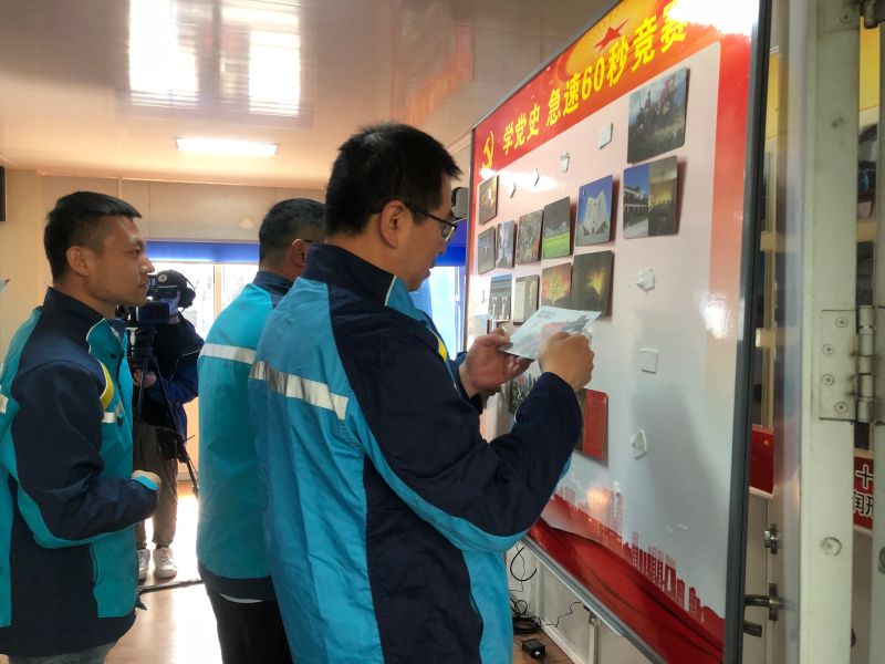 在學(xué)黨史環(huán)節(jié),與會(huì)人員觀看了《中國(guó)共產(chǎn)黨百年述職報(bào)告》,共同感受建黨百年的苦難輝煌。之后,與會(huì)人員分3組開(kāi)展黨史“急速60秒”競(jìng)賽,憑借日常黨史學(xué)習(xí)的知識(shí)積累,在固定時(shí)間內(nèi)完成黨史大事件的時(shí)間軸排序。參賽小組團(tuán)結(jié)協(xié)作,充分調(diào)動(dòng)知識(shí)儲(chǔ)備,廣大黨員在寓教于樂(lè)的活動(dòng)中收獲知識(shí),在中國(guó)共產(chǎn)黨百年歷程中汲取精神養(yǎng)分。