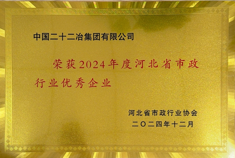 中國二十二冶榮獲河北省市政行業(yè)優(yōu)秀企業(yè)榮譽稱號